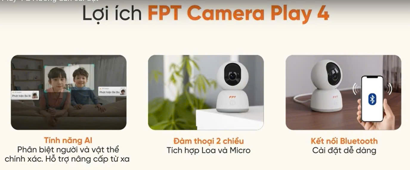 FPT Telecom vừa cho ra mắt dòng camera mới có tên Camera Play 4, đây là phiên bản nâng cấp của dòng Camera Play 3 vừa cho ra mắt trước đó 2023. Phiên bản mới này được nâng cấp công nghệ Bluetooth cài đặt nhanh chóng tức thì, đàm thoại chủ động 2 chiều, AI phân biệt chuyển động người vật và nhiều ưu điểm vượt trội khác. Hãy lắp đặt FPT Camera Play 4 ngay hôm nay để trải nghiệm các tính năng vượt trội nhé.